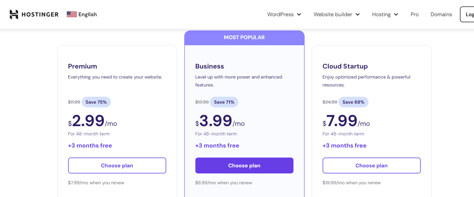 - Select a Hosting Plan: Hostinger offers several hosting options, including shared hosting, VPS hosting, and cloud hosting. Choose a plan based on your website’s needs.